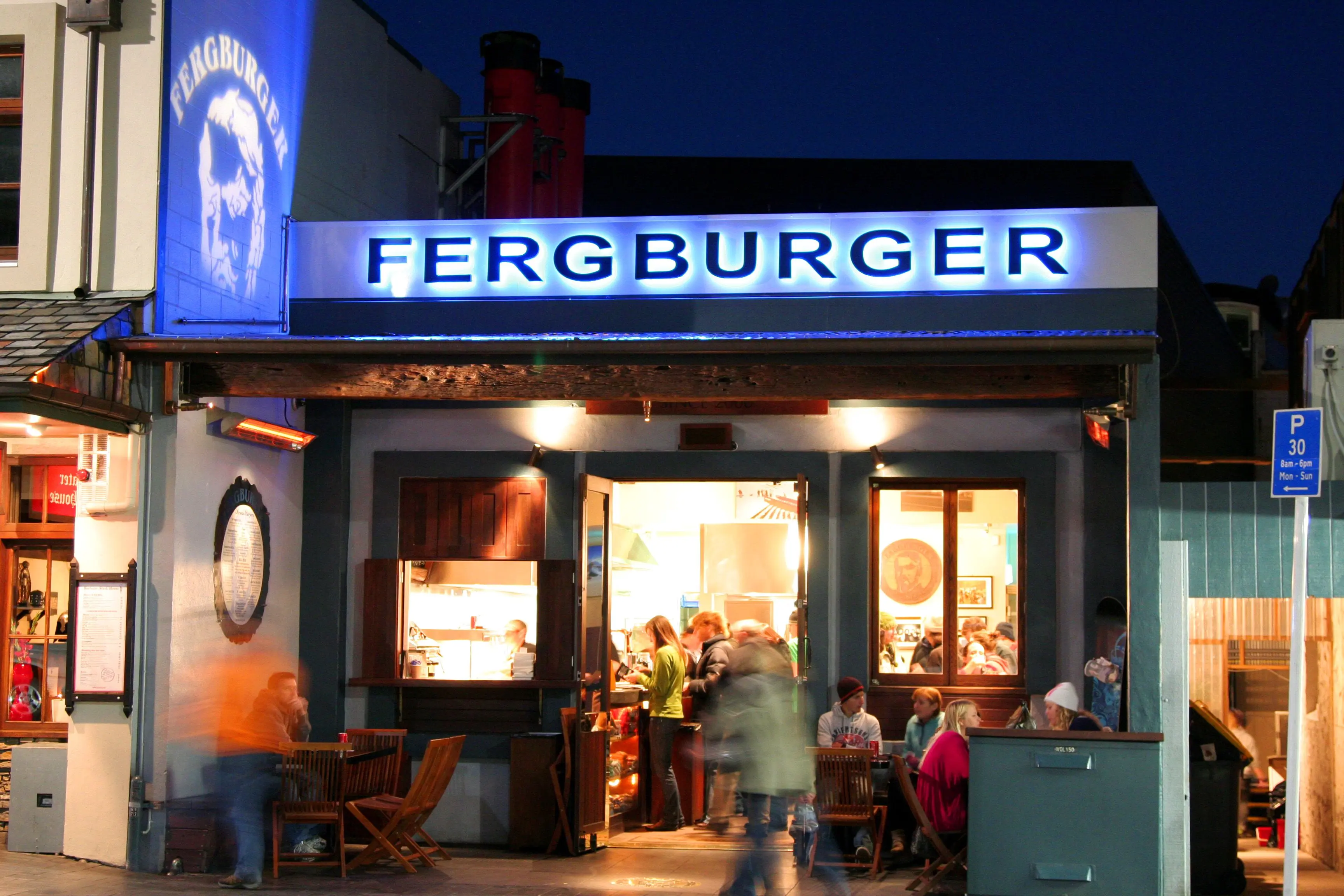 * Fergburger mở cửa gần như 24/7 — rất thuận tiện cho du khách muốn ăn bất cứ lúc nào, ngay cả khi về đêm muộn.