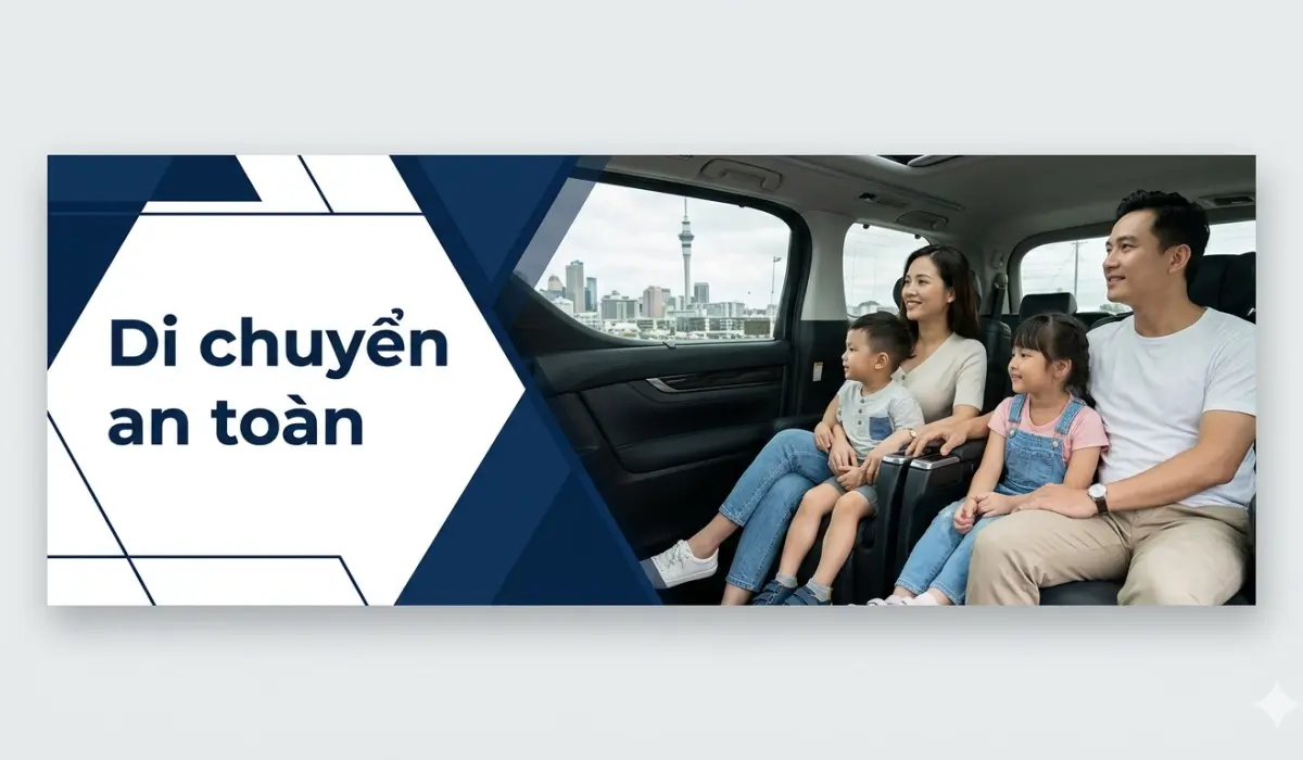 Phù hợp cho: người Việt mới đến Auckland, người chưa có xe riêng, gia đình có trẻ nhỏ, khách mang nhiều hành lý, người cần hỗ trợ đưa đón sân bay Auckland 24/7 hoặc theo lịch hẹn.